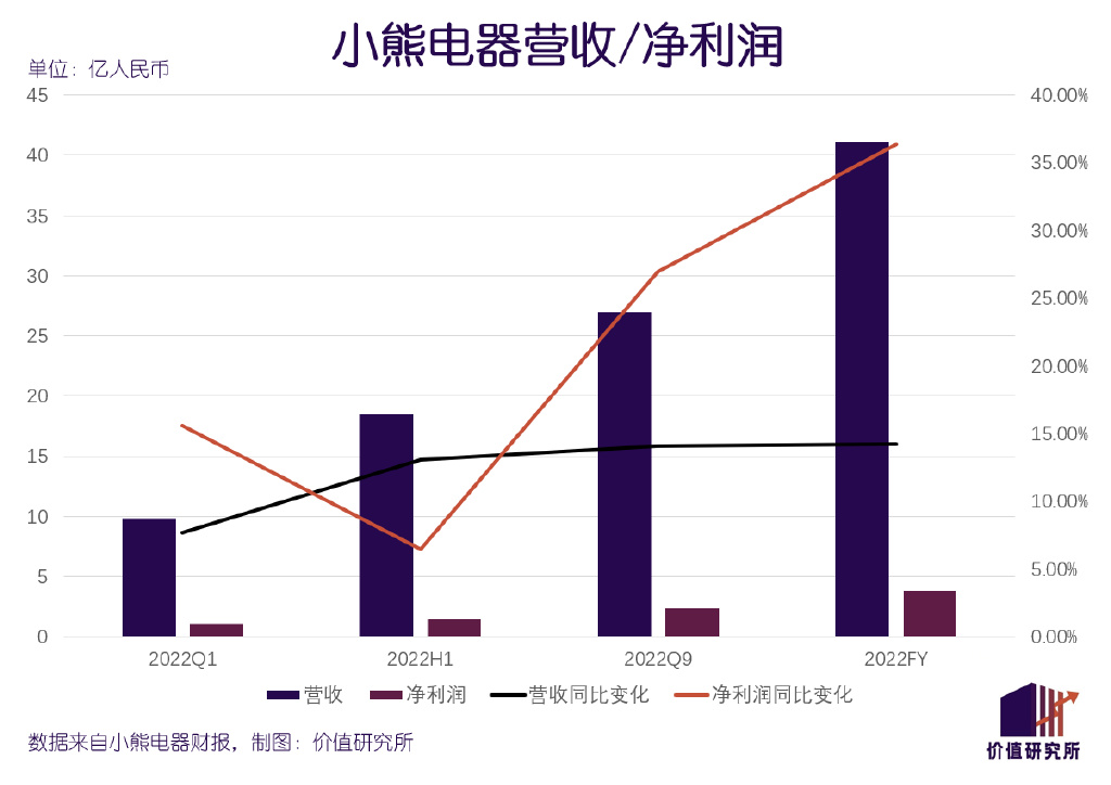好在这个信号来得不算很晚。3月7日,小熊电器公布2022财年年报,营收、利润均录得同比增长,前者更创下新高。这份财报,也为衰退中的网红小家电行业打了一剂强心针。
