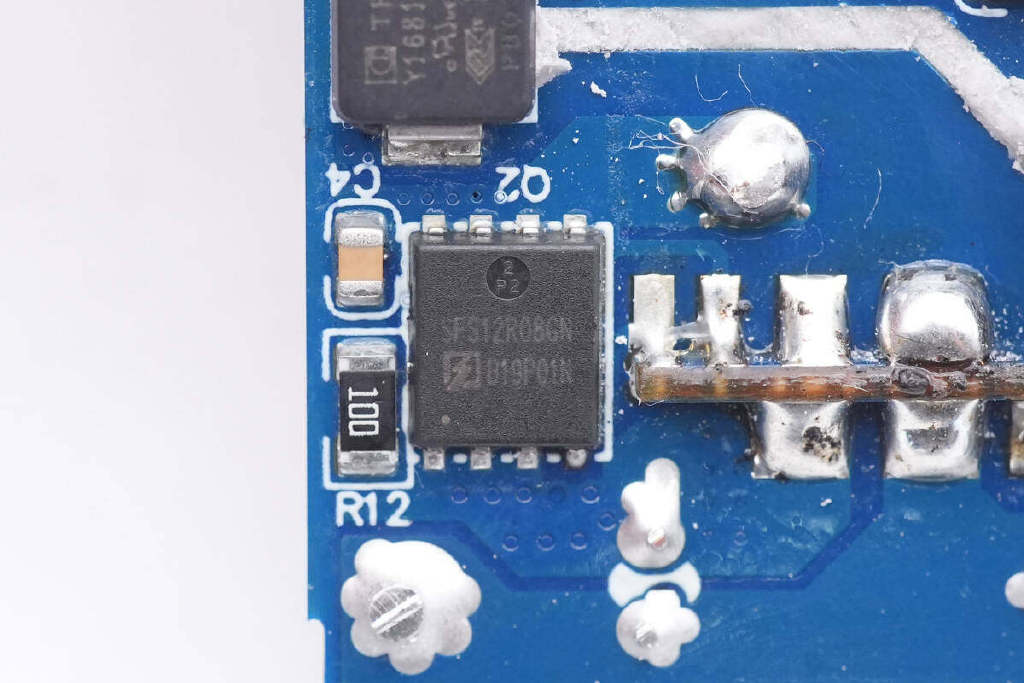 焊接取下充电器PCBA上的插件元件,在PCB上焊接输入保险丝,初级主控芯片和同步整流管。