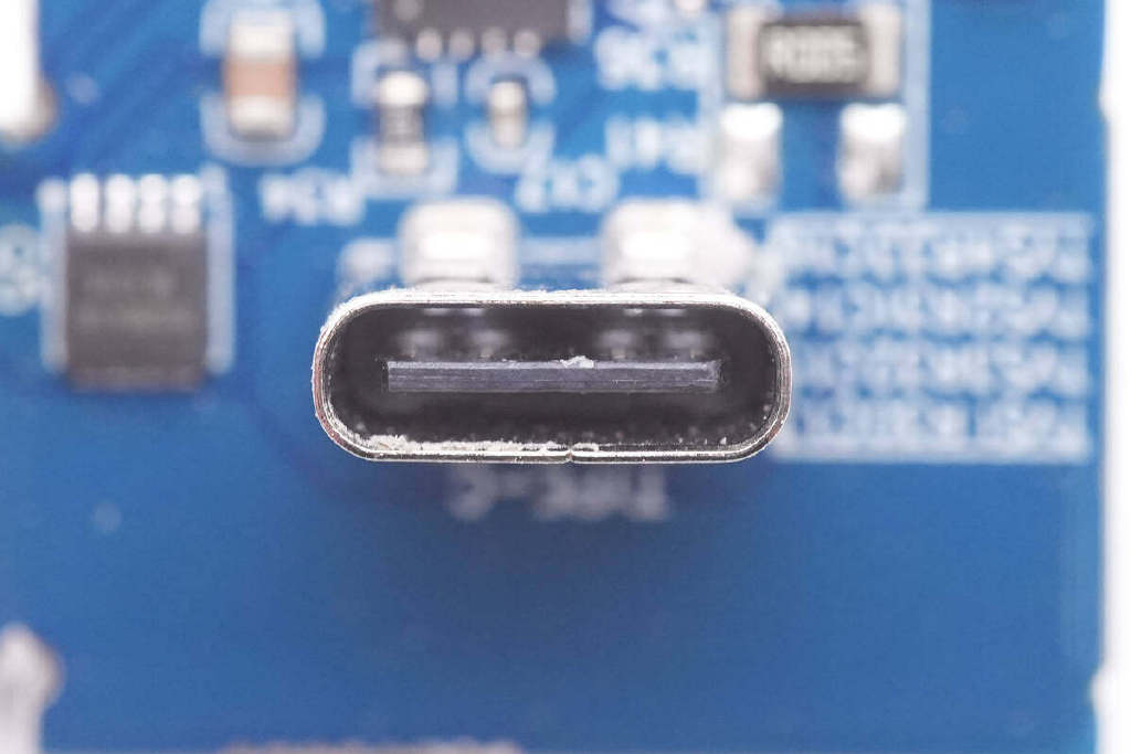 USB-C母座采用过孔焊接,黑色胶芯不露铜。