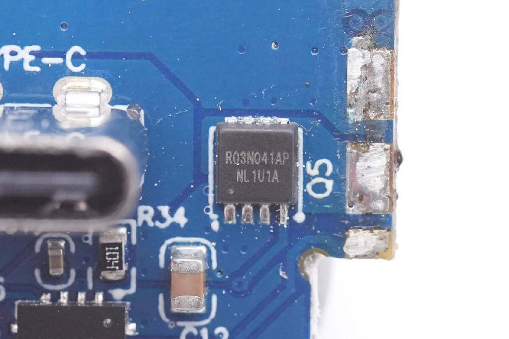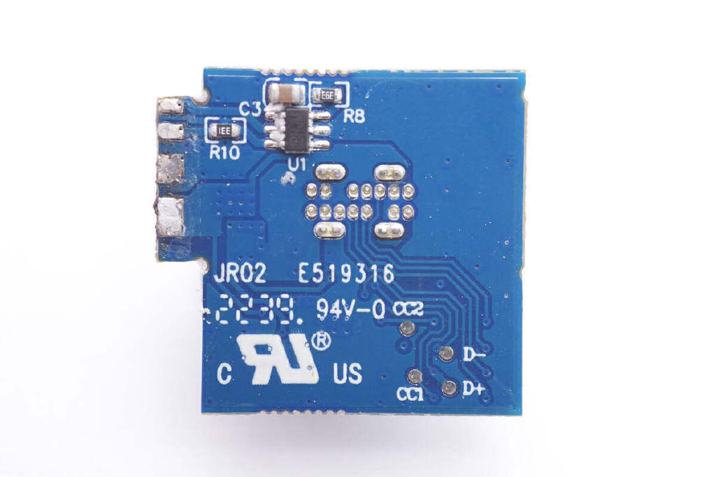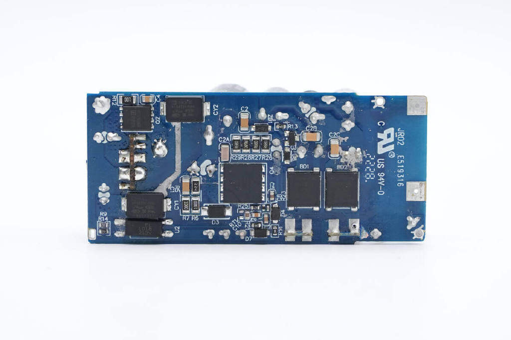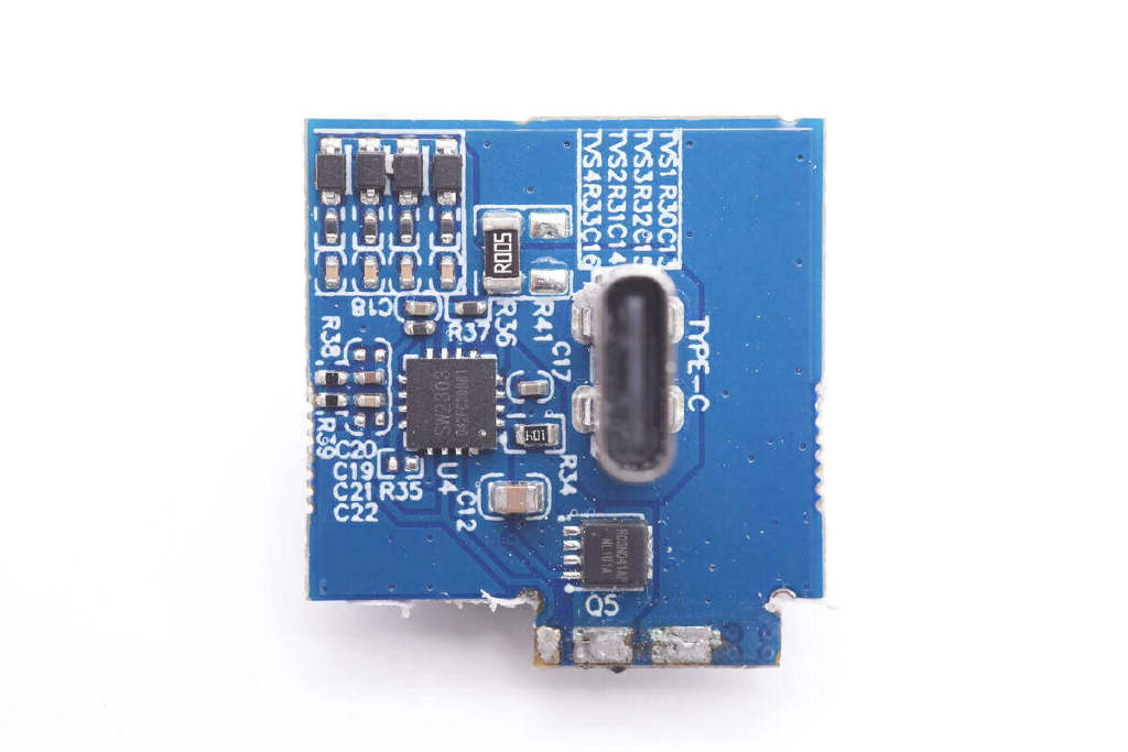 背面焊接同步整流控制器,USB-C母座为过孔焊接固定。