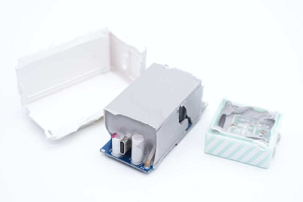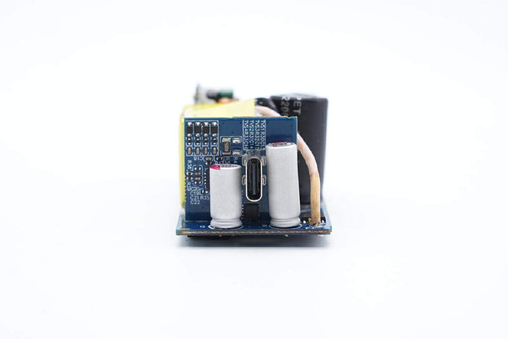 输出侧焊接一块小板,焊接USB-C母座和协议芯片,契合外壳设计,充分利用空间。
