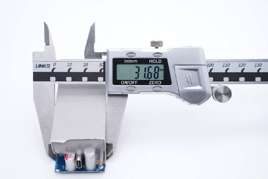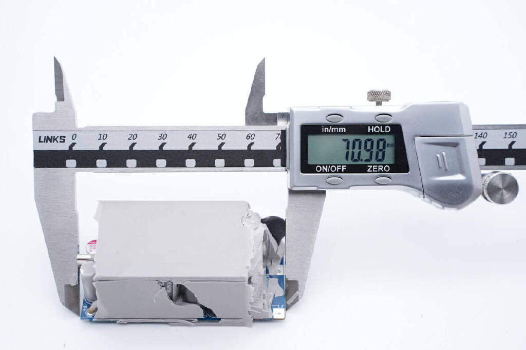 使用游标卡尺测得PCBA模块长度约为70.98mm。