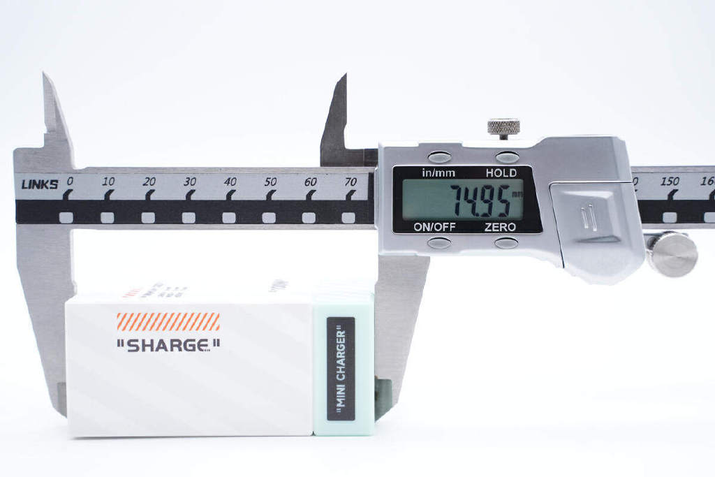 使用游标卡尺测得充电器机身长度为74.95mm。