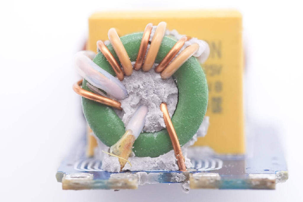 第二级共模电感采用扁铜线绕制,底部焊接绝缘支架。