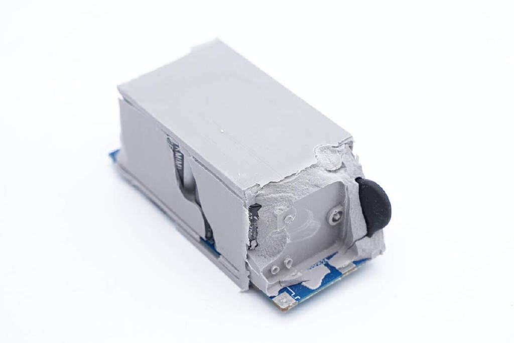 PCBA模块整体使用灌封胶填充,提升热容量和散热性能。同时填充器件的空隙,避免因跌落造成损坏。