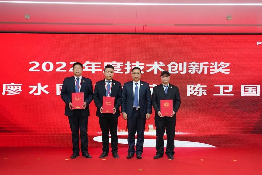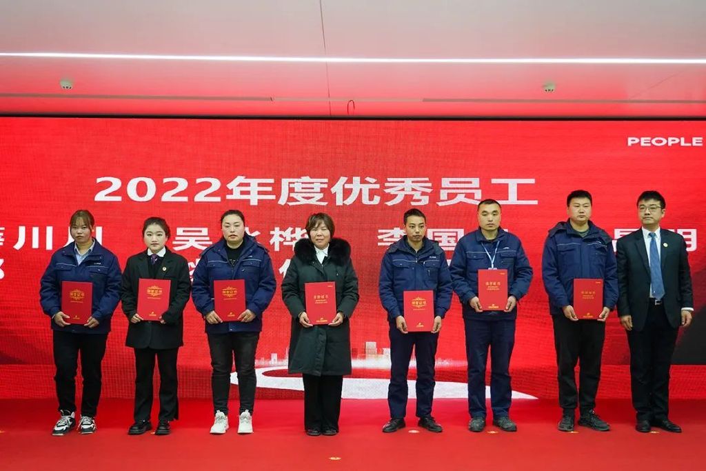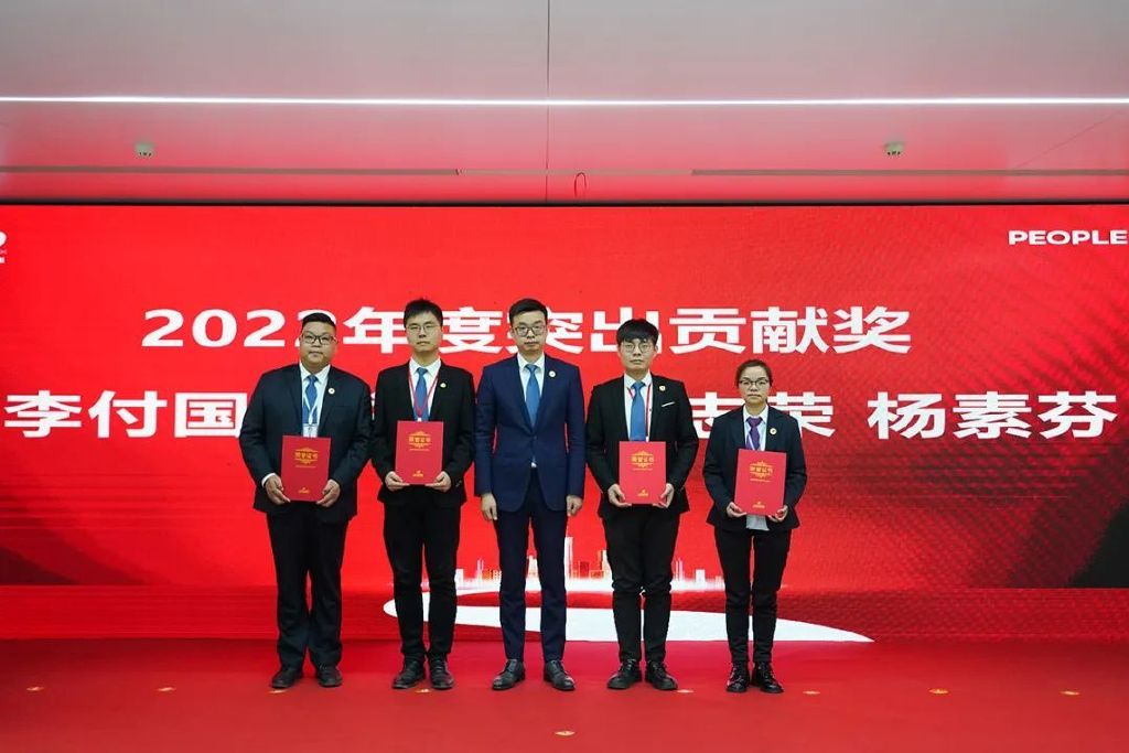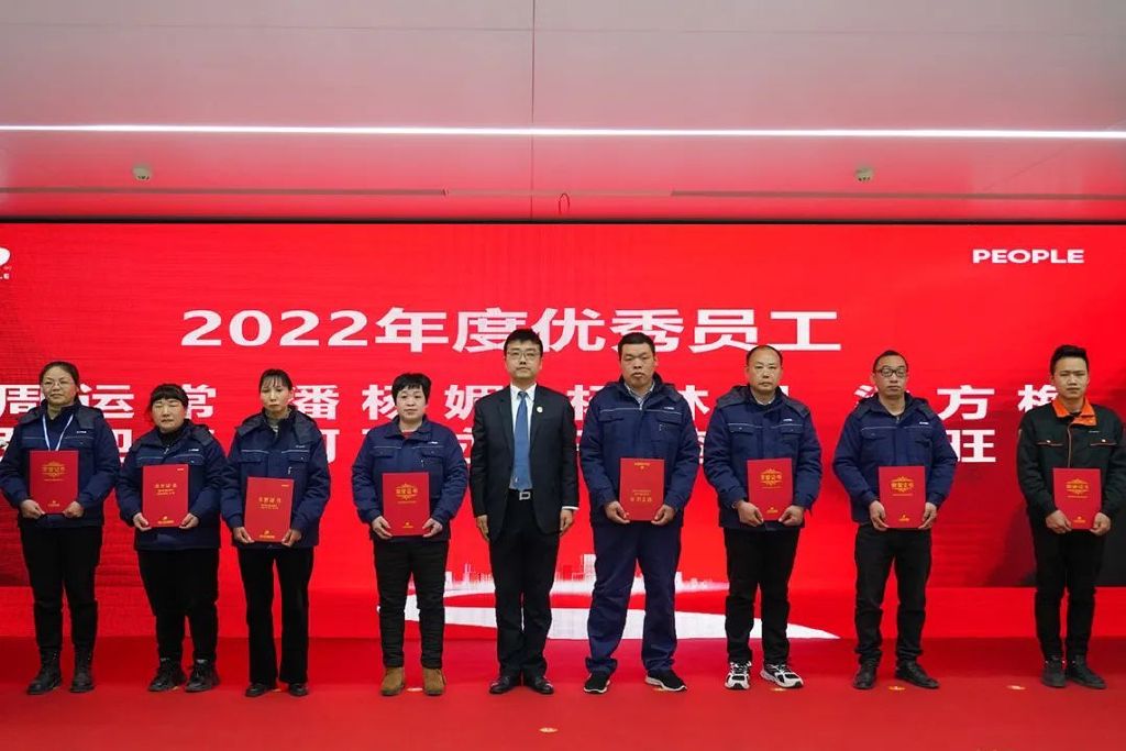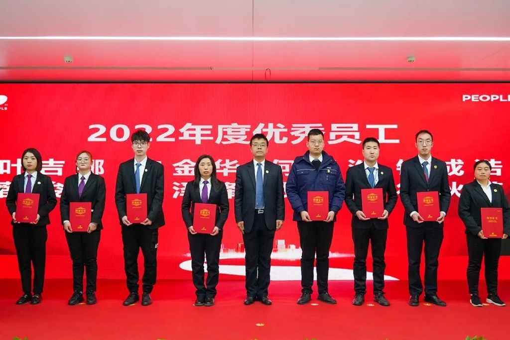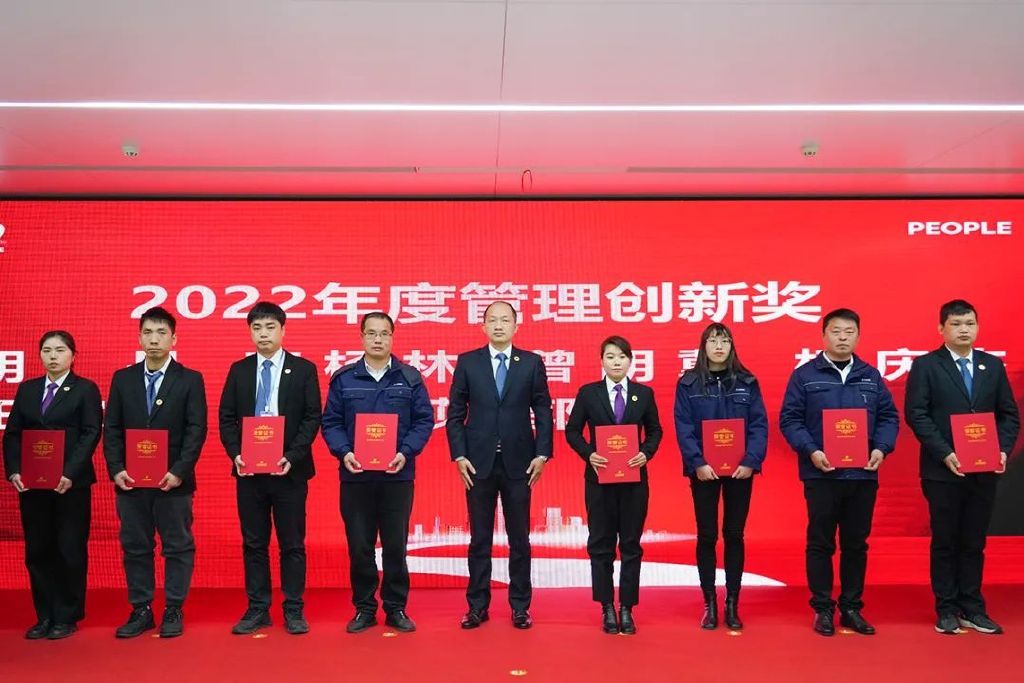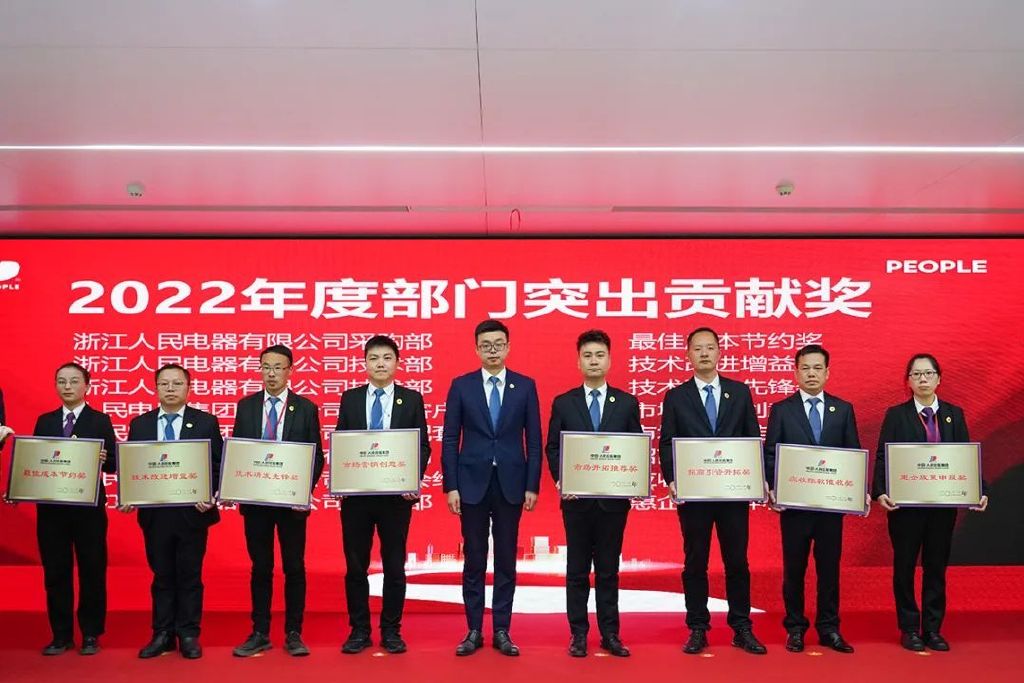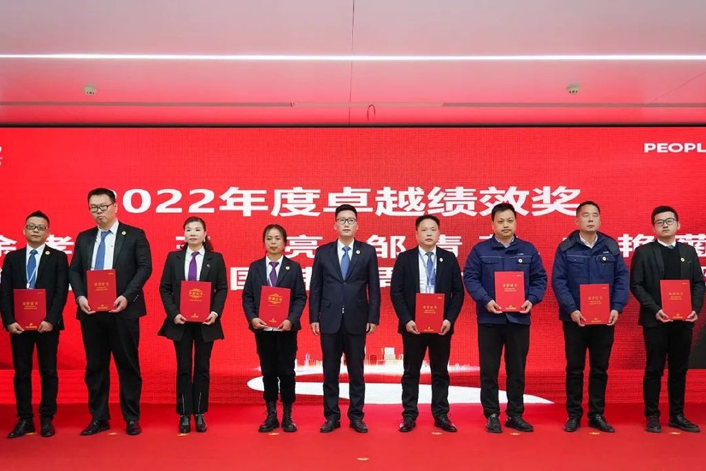 紧接着,会上还对获得突出贡献奖、技术创新奖、卓越绩效奖、管理创新奖以及年度优秀员工共77位2022年度先进员工进行了颁奖。人民电器集团销售公司行业战略部副经理李付国作为员工代表发言。