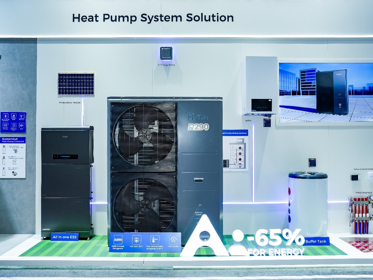 此外,面对欧盟日趋严格的F-Gas法规及低碳减排要求,海尔在广交会展出的冷媒技术体系展现了强劲的环保担当。其空气源热泵应用R290环保冷媒,VRF多联机产品全球应用R32制冷剂,全球首创的静压气悬浮水机也逐步推向海外市场,从源头上降低碳排