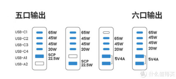 ▲各种情形下充电功率,充电口特写看了一下产品说明,最低功率也有20瓦,而且支持PD/QC/FCP等等多种快充协议,不管是安卓手机或者是苹果手机,都能实现快充。我不得不拍大腿,氮化镓技术实在是太牛ABC了吧!
