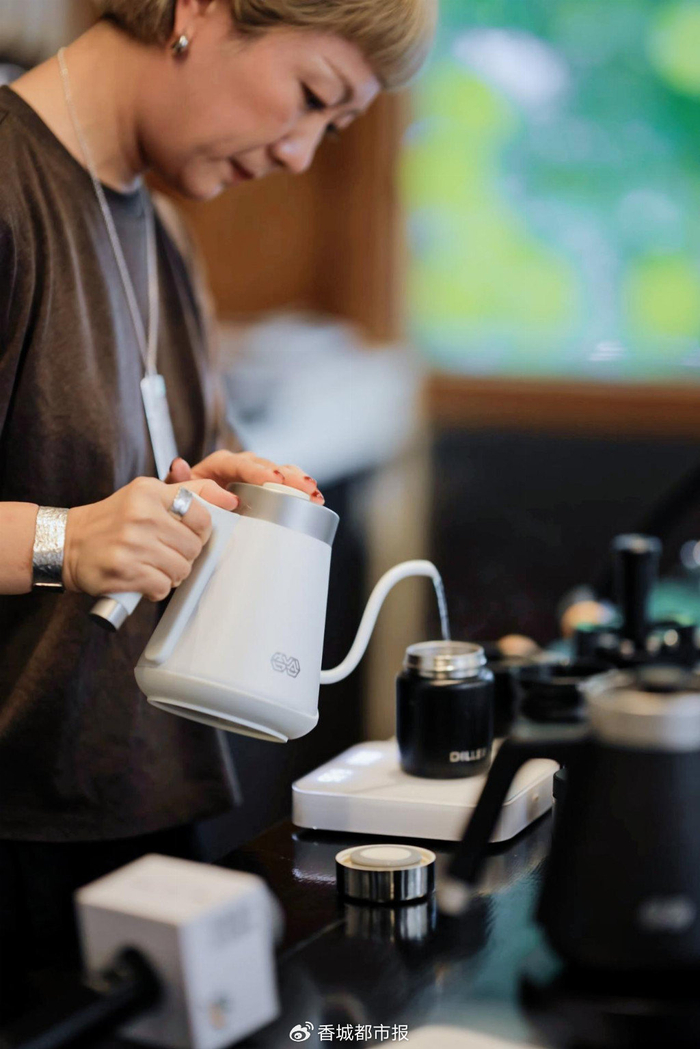她一边说一边注水,细微地调整着速度、落点与粉层的膨胀。那一刻,仿佛壶与她之间早已达成默契。「我最怕的是温差。」Sherry 继续说,「壶里 93℃,到了滤杯口就掉到 88℃,酸会散,香也会跑。但这只壶出水很稳,尤其在调节水流形状时,我能更细致地控制香气的展开。它让我更像我自己。」