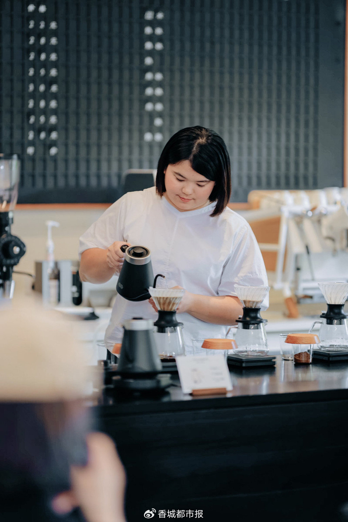 对咖啡师而言,稳定的温度比任何手法都重要。Sherry 说,从 2020 年开始,她就不断研究温度对风味的影响 —— 不仅是壶中的温度,更是注入咖啡粉的实际温度,因为那才决定了萃取的完整性。通过分段控温,她能在不同阶段展现花香、柑橘与蜜桃的层次,即便咖啡冷却,味道依然明亮。